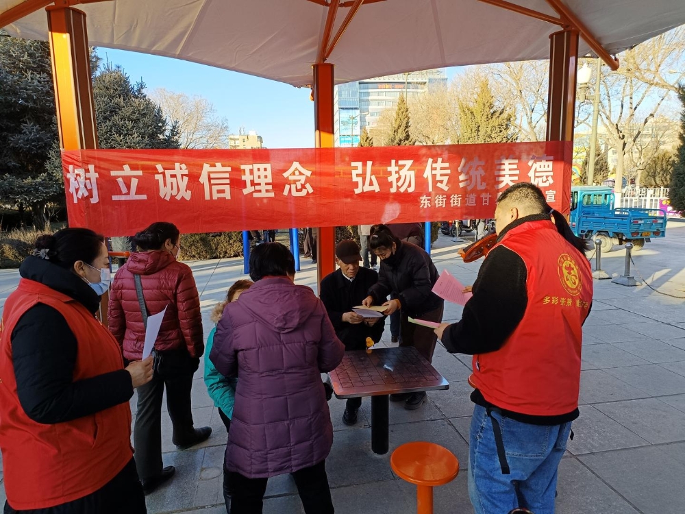 甘州融媒讯 为弘扬诚实守信文明新风,营造良好的营商环境,提高个体工商户的诚信意识,给消费者创造一个诚信和谐、安全放心的消费环境。近日,甘州区东街街道甘泉社区工作人员深入辖区门店开展诚信经营宣传活动。