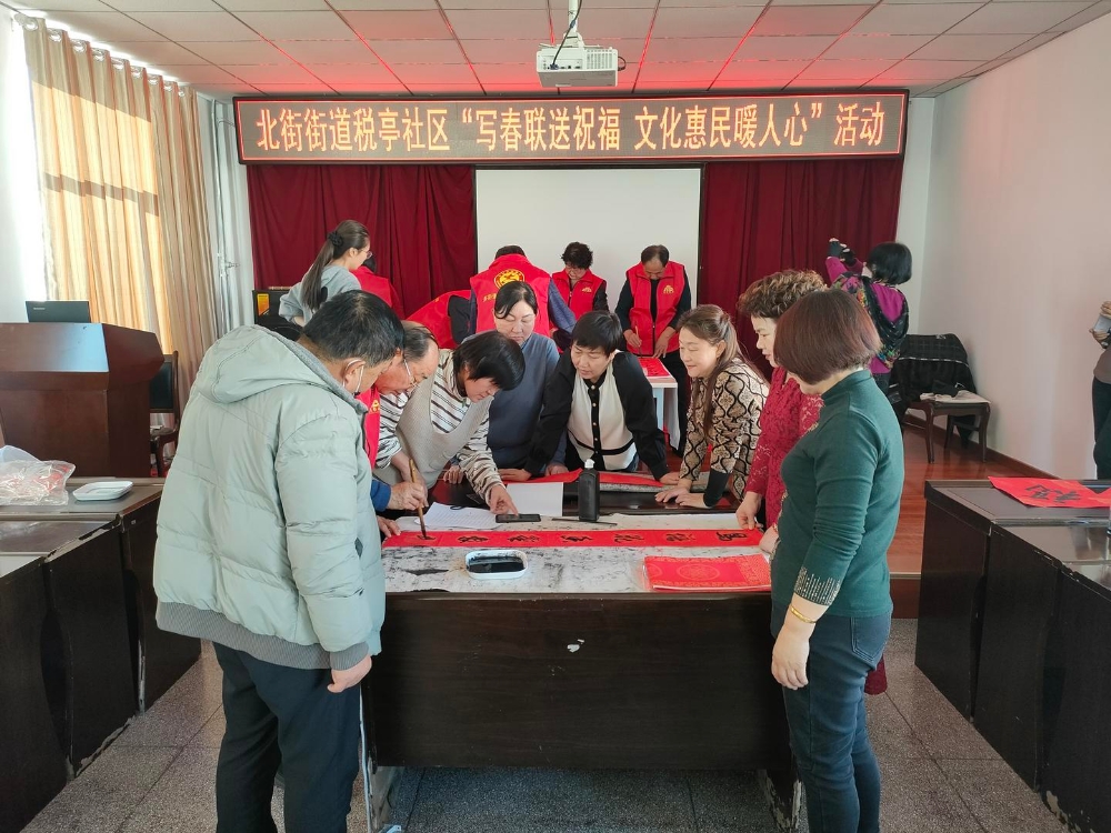 甘州融媒讯 春节将至,为弘扬中华优秀传统文化,营造喜庆祥和的节日氛围,进一步丰富辖区居民的文化生活,1月10日,甘州区北街街道税亭社区邀请市老年书画摄影家协会在社区四楼活动室开展“写春联送祝福,文化惠民暖人心”活动。